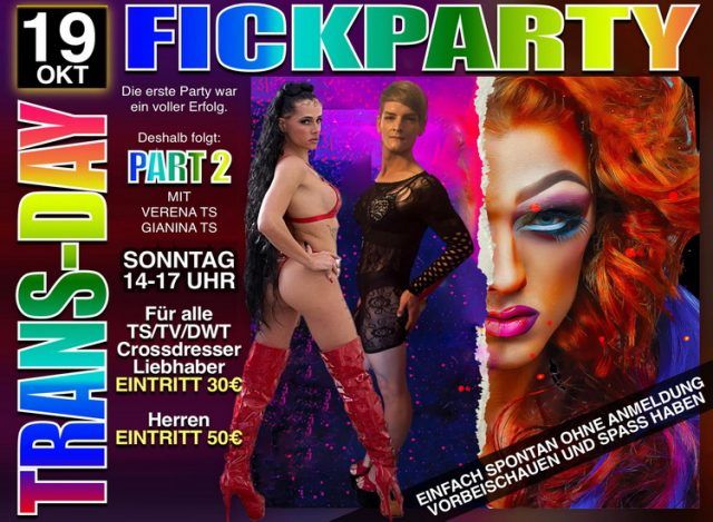 Für alle TS / TV / DWT / Crossdresser & Herren, die was SPEZIELLES erleben wollen, am 19.10 in Stuttgart, mit VEREBA TS und der wohl hübscheste TS Deutschlands: GIANINA TS, Plus evtl. weitere Damen und Paare. Feiert mit uns zusammen eine endlose geile Fickparty erleben.